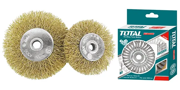 Diámetro: 100 mm, 4" Diámetro del orificio: 13 mm Diámetro del cable: 0,3 mm Longitud del cable: 23 mm RPM: 4500 r/min